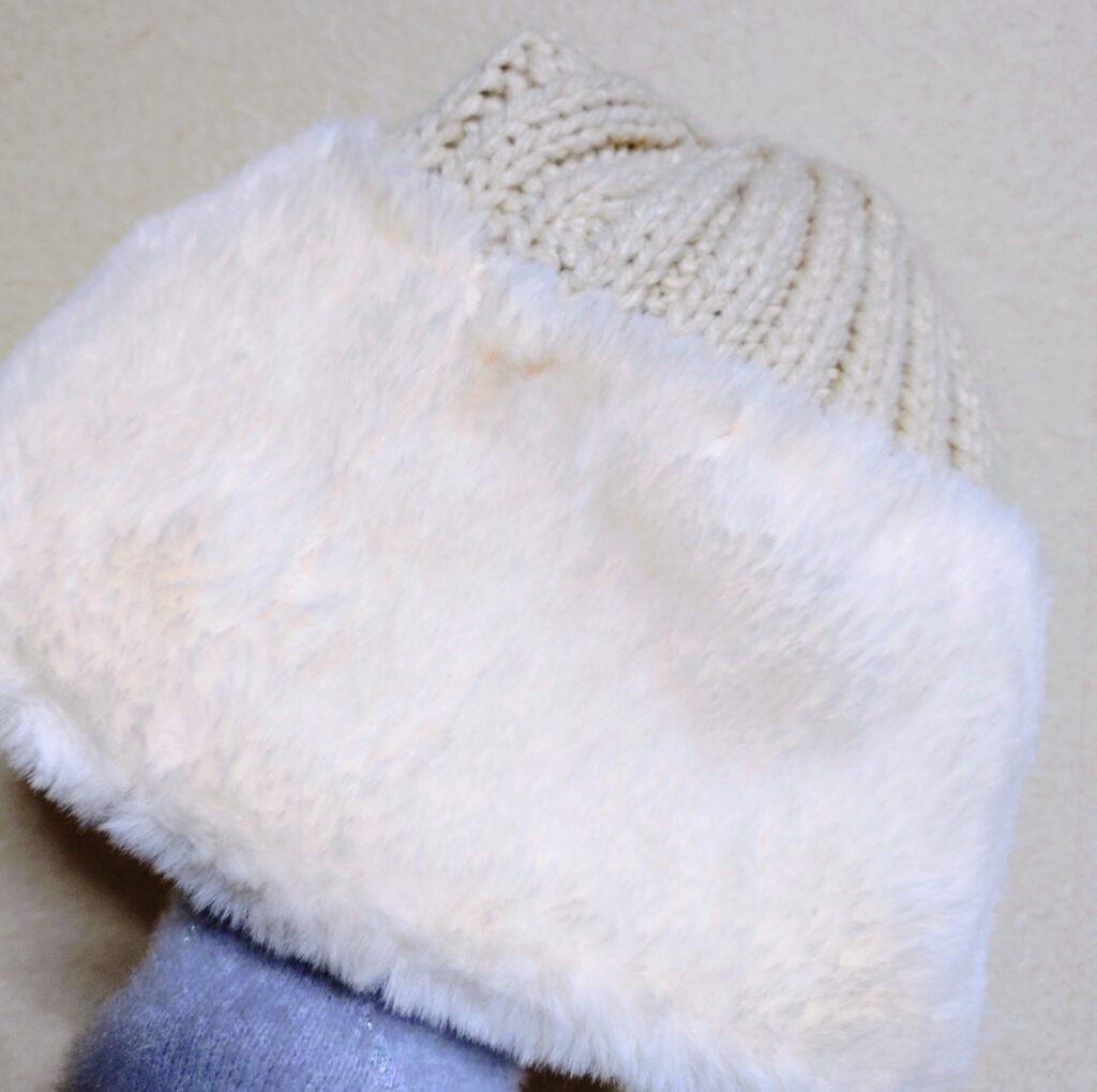 ニット部分は正面からは見えずファーのみが見えるのですが、これがまた良い感じ。顔回りがフワフワしていて、見るからに暖かそう(実際あたたかいです)。