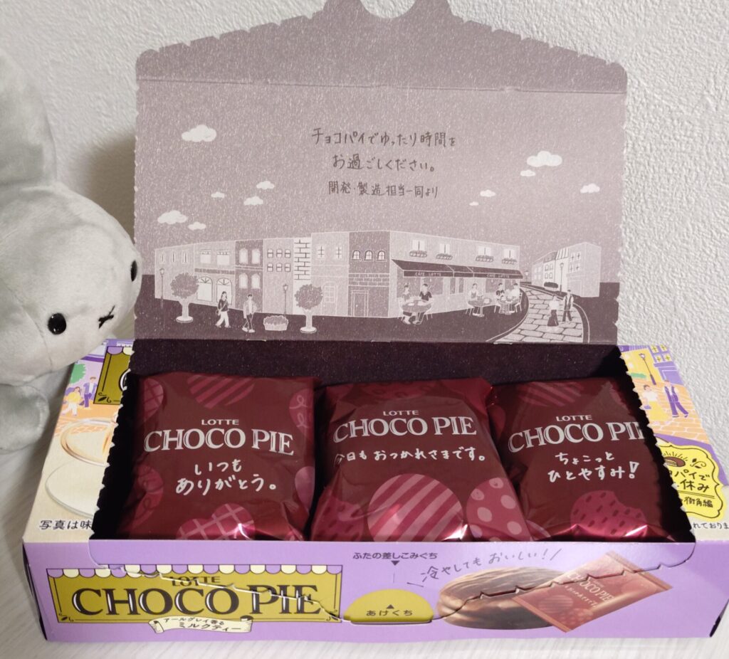 発売から少し経過していますが、まだ店頭でもチョコパイ<アールグレイ香るミルクティー>は見かけますので、まだ食べたことがない方はぜひ。ひと休みしたい時、気分をリフレッシュしたい時のおやつにいかがでしょうか。