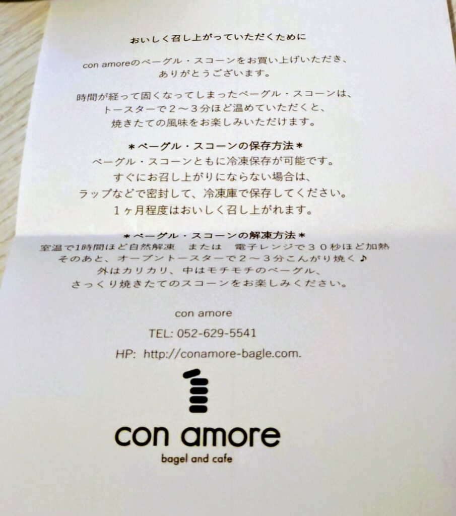 ところが、先日健康診断前の時間調整のため栄地下をフラフラしていたころ、行ってみたかったベーグル屋さんの一つ「コナモーレ」さんのベーグルと出会いました。