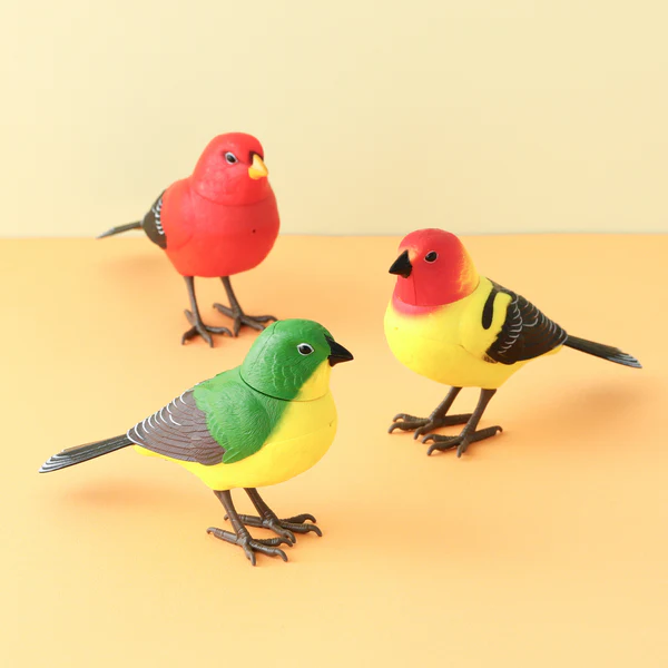 小刻みに首を振りながら、歌ってくれる姿が何とも愛おしいです。色はカラフルながらも、姿は本物の鳥のようなので、何度も見るうちに段々と愛着がわきます。