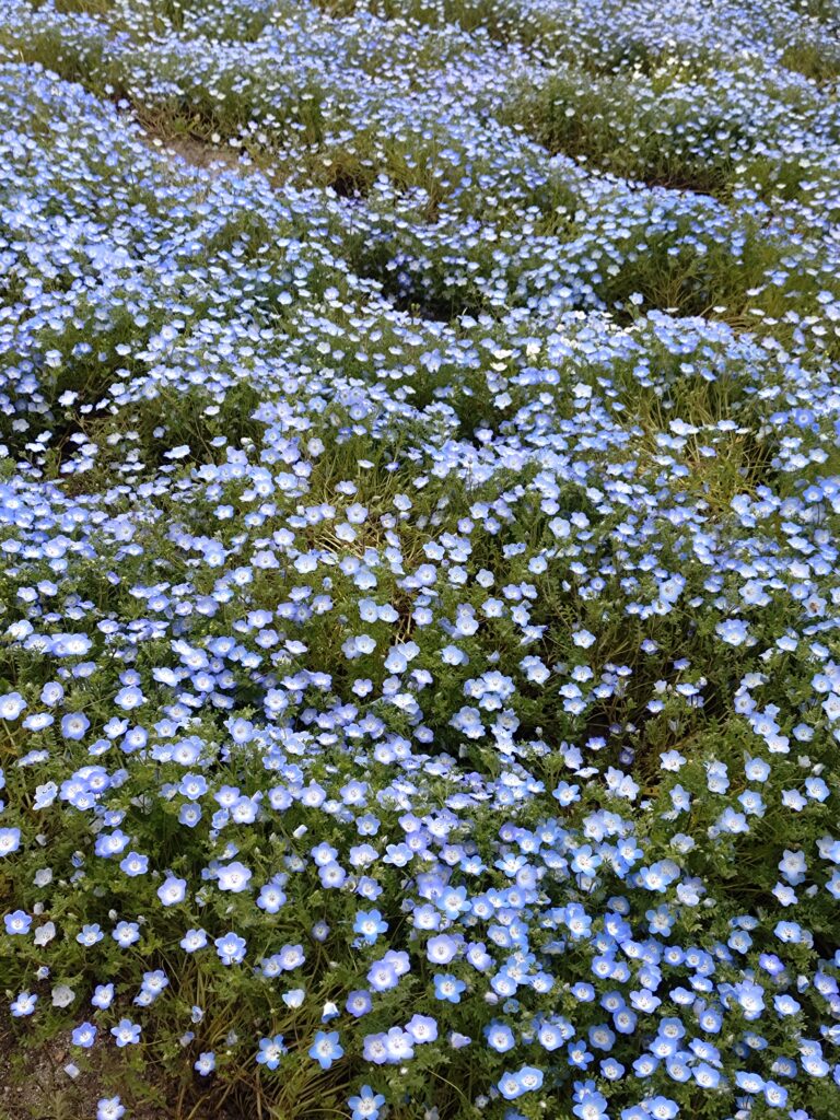 4月中旬に行ったのですが、ネモフィラ畑は下部分がほぼピークでとっても綺麗でした。