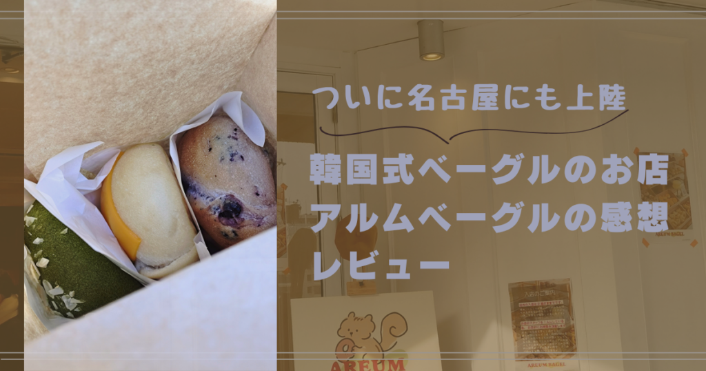 こんにちは。 今日は2025年12月24日に名古屋大須でオープンしたばかりのアルムベーグルさんに行ってきましたので、紹介していきます。 可愛らしいお店に韓国式の新しいベーグルが楽しめる素敵なお店でしたよ。正直ベーグルとしては少しお高めですが、大き...